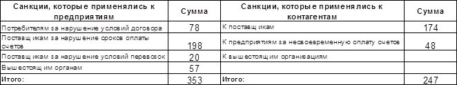 Таблица 6. Анализ экономических санкций, примененных к предприятию и его контагентам (тыс. грн.)