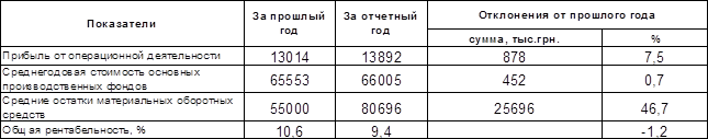 Таблица 7. Оценка уровня общей рентабельности работы предприятия (тыс. грн.)