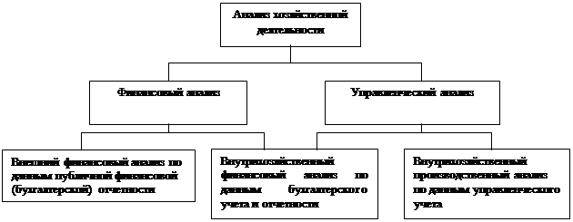Финансовый анализ является частью общего, полного анализа хозяйственной деятельности, который состоит из двух тесно взаимосвязанных разделов: финансового анализа и производственного управленческого анализа (рис. 1).