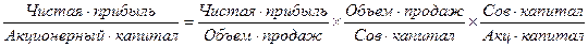 Как видим, рентабельность собственного (акционерного) капитала зависит от изменения уровня рентабельности продукции, скорости оборота совокупного капитала и соотношения собственного и заемного капитала Изучение. подобных зависимостей имеет большое значение для оценки влияния различных факторов на показатели рентабельности. Из приведенной зависимости. следует, что при прочих равных условиях отдача акционерного капитала повышается при увеличении доли заемных средств в составе совокупного капитала.