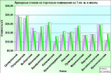 По данным центра недвижимости "Ината", растет интерес к покупке прав аренды магазинов. Разброс цен велик - от $15 000 до $80 000. Верхняя планка арендных ставок для Невского - $1200 - 1500 за 1 кв. м в год. На Большом проспекте Петроградской стороны и некоторых других осевых магистралях плата за торговые площади доходит до $600 - 700 за 1 кв. м в год.
