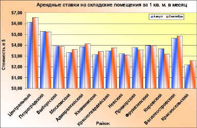 Уходящий год характеризовался на рынке бизнес-центров стабильно высокой активностью арендаторов. По данным петербургского представительства компании Colliers International, загрузка офисных зданий за год увеличилась примерно на 5% , достигнув средних показателей 92 - 95% в зависимости от класса. Ресурсы роста арендной платы фактически исчерпаны. На рынке наступила ценовая стабилизация. Незначительный рост ставок (в пределах 10 - 15% ) наблюдался только в секторе дешевых бизнес-центров класса С. В настоящее время офисные комплексы уровня А предлагают площади по $450 - 600 за 1 кв. м в год; ценовой диапазон для объектов категории В составляет $250 - 400; расценки на демократичные офисы С-класса - $150 - 250.
