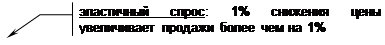 - при эластичном спросе, когда 1% снижения цены вызывает увеличение продаж более чем на 1%, коэффициент эластичности больше единицы;