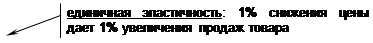 - спрос имеет единичную эластичность, когда 1%-ное изменение цены вызывает 1%-ное изменение продаж товаров;