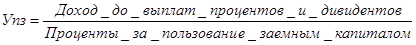 Этот показатель измеряется в долях единицы и показывает во сколько раз валовый доход предприятия превосходит сумму годовых процентов по долгосрочным суммам и займам. Снижение величины этого коэффициента свидетельствует о повышении степени финансового риска. Как правило, низкое значение показателя Упз соответствует высокой доле заемного капитала. Вместе с тем сочетание этих значений показателей варьирует по отраслям. Доля заемного капитала, рискованная для данной отрасли, может не быть таковой для другой отрасли.