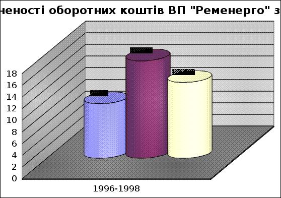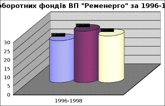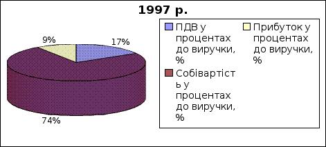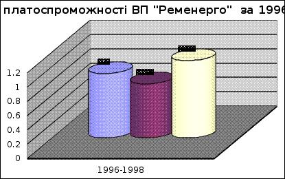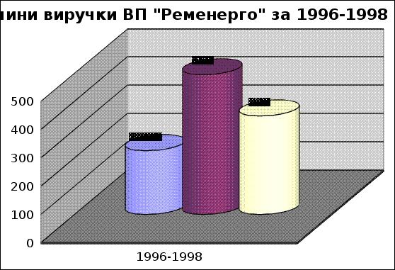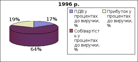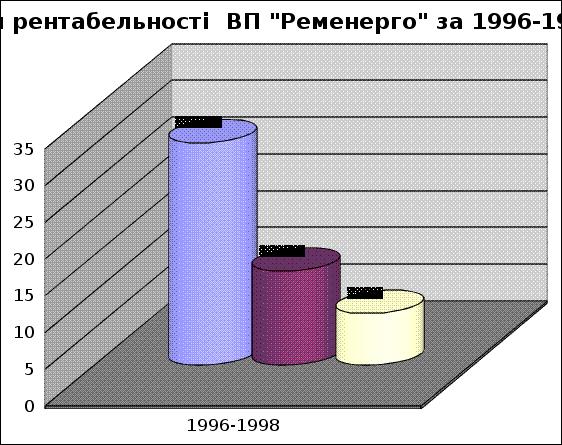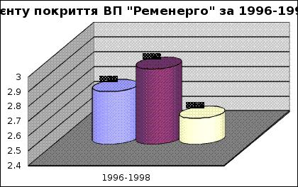 | Діаграма 1. ПДВ, собівартість, прибуток у процентному відношенні до виручки ВП "Ременерго" за 1996-1998 звітні роки. | ||||||||||||