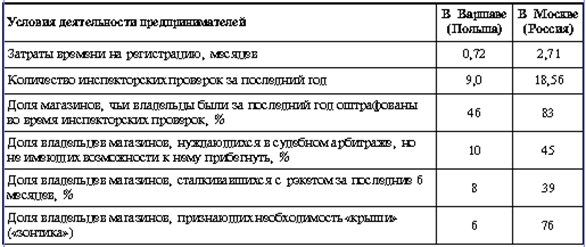 Таблица 3 Сравнение условий развития мелкого торгового бизнеса в Москве и Варшаве, 1996 г