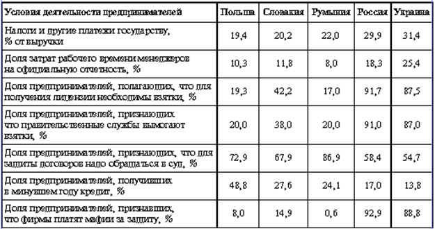Таблица 4 Сравнение условий развития бизнеса в пяти постсоциалистических странах, 1997 г.