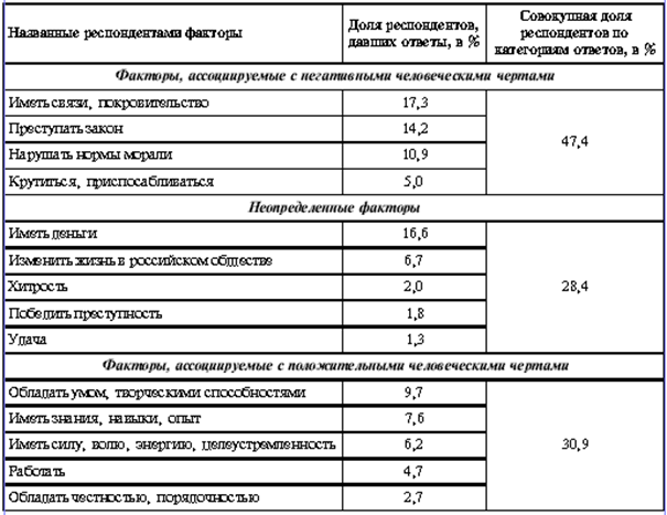 Таблица 5 Мнения россиян о том, что необходимо для занятия бизнесом (по данным социологического обследования в Санкт-Петербурге, 1998 г.)