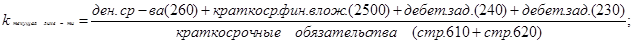 Снижение данного коэф. за 2000г. означает уменьшение части текущих обязательств, которая может быть погашена на дату составления баланса.
