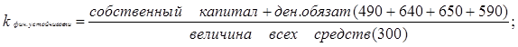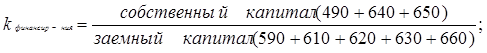 Рост данного коэф. на 0,025 в течение года показывает, что рост собственного капитала в общей величине всех источников увеличилась на 70%всех активов предприятия, сформированных за счет собственных средств.