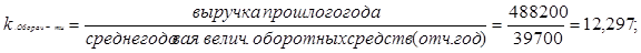 Данные табл. 10 свидетельствуют об улучшении фин. Положения ОАО "Сигма", т.к. оборачиваемость оборотных активов снизилась на 0,2 дня, в результате чего в отчетном году высвободились оборотные активы 328,7 т.р. Коэф-нт оборачиваемости за отчетный период вырос на 0,107. Этому способствовало увеличение выручки от реализации на 26300 т.р. Предприятию следует принять меры по сокращению среднегодовых остатков оборотных активов.
