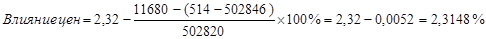 2) Влияние цен= расчетная рентабельность – расчетная рентабельность