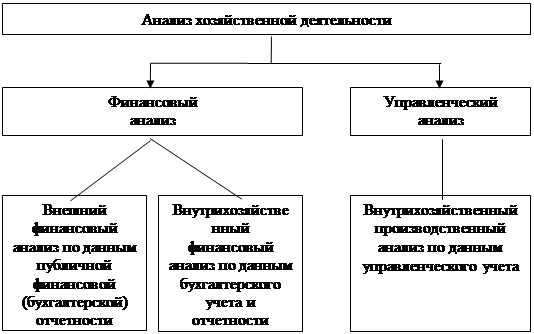 Разделение анализа на финансовый и управленческий обусловлено сложившимся на практике разделением системы бухгалтерского учета в масштабе предприятия на финансовый учет и управленческий учет. Такое разделение анализа несколько условно, потому что внутренний анализ может рассматриваться как продолжение внешнего анализа и наоборот. В интересах дела оба вида анализа подпитывают друг друга информацией.