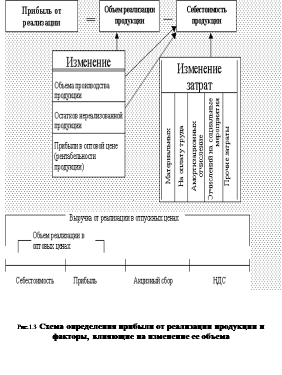 Внутренние факторы действуют на прибыль через увеличение объема выпуска продукции, улучшение качества продукции, повышение отпускных цен и снижение издержек производства и реализации продукции. Величина прибыли от реализации продукции определяется по формуле