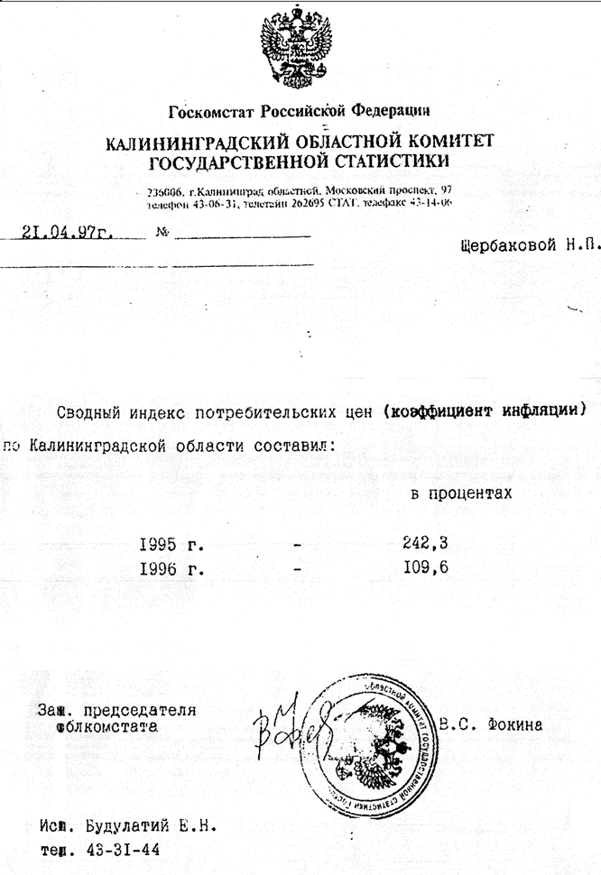 Отчёт о финансовых результатах за 1996 год, пересчитанный с помощью индекса инфляции.