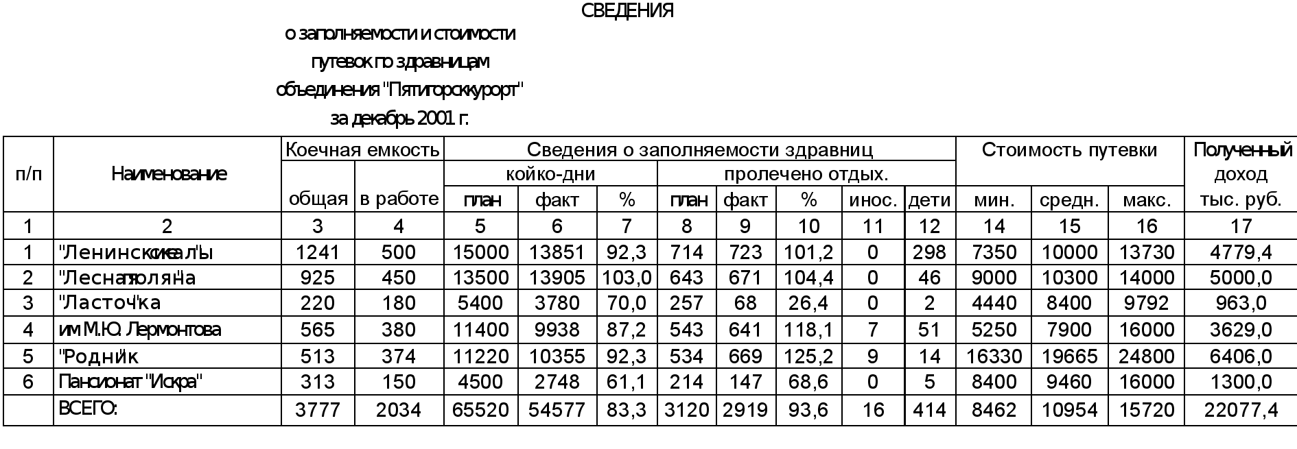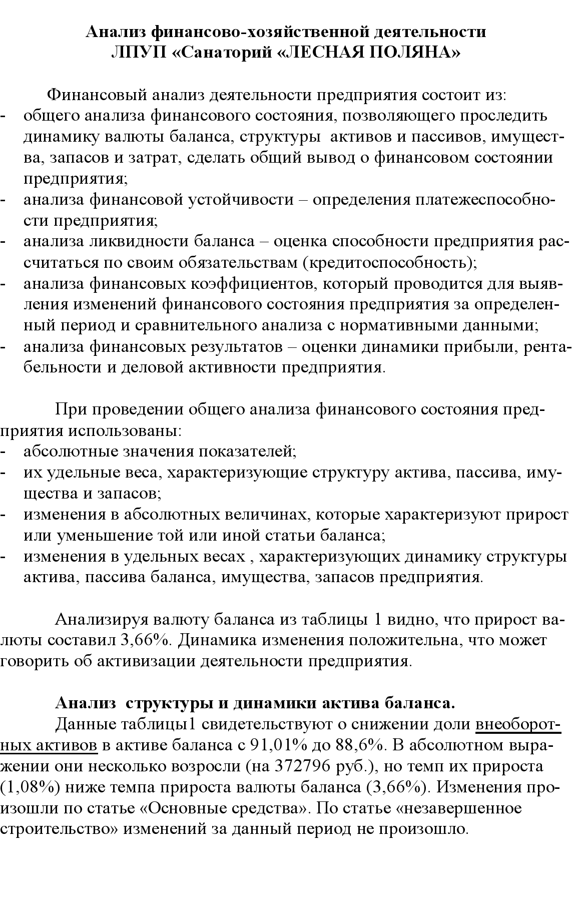 Реферат: Анализ финансового состояния санатория Лесная Поляна (Пятигорск) и Пятигорсккурорта