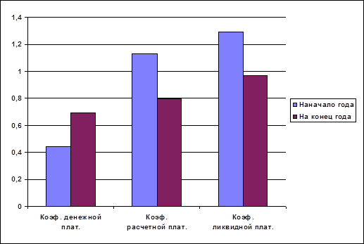 рис. 3.21. Коэффициенты платежеспособности на начало и конец года