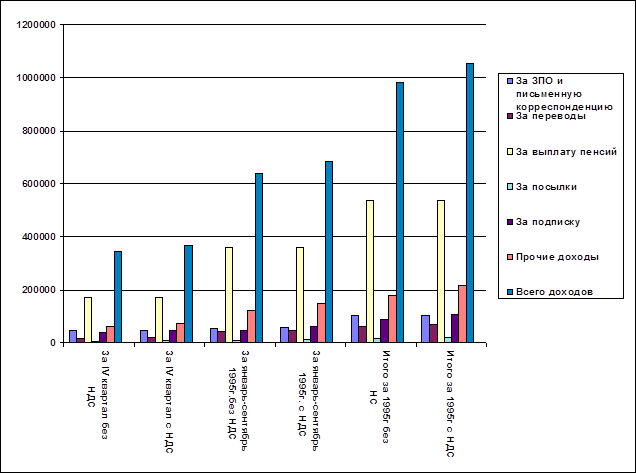 1.Предприятие закончило 1995 финансовый год с убытками в размере 63 миллиарда карбованцев в целом по Крыму, в среднем 2,6 миллиарда по каждому филиалу. Общее состояние можно считать удовлетворительным потому, что большинство убытков покроются за счет взаиморасчетов с объединением УОПС “Укрпочта”