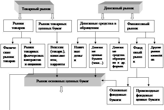 - рынки первичных и производных ценных бумаг.
