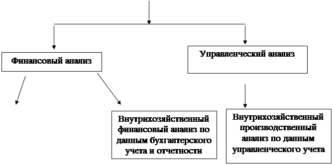 Финансовый анализ является частью общего, полного анализа хозяйственной деятельности, который состоит из двух тесно взаимосвязанных разделов: финансового анализа и производственного управленческого анализа (см. рис. 1).