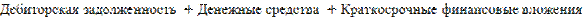 Далее проанализируем соотношение наиболее ликвидных оборотных средств с текущими обязательствами. Считается, что сумма дебиторской задолженности, денежных средств и краткосрочных финансовых вложений не должна быть меньше общей величины кредиторской задолженности и краткосрочных займов и кредитов.[10]