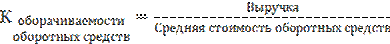 Коэффициент оборачиваемости (формула 1), показывающий число оборотов, совершенных оборотными средствами за отчетный период: