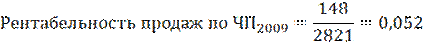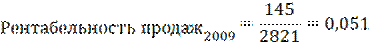 Рентабельность продаж по чистой прибыли претерпела абсолютно идентичную динамику, как и в случае с предыдущим показателем. Ее итоговое значение в 2009 году составило 0,052.[11]