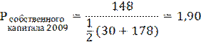 Рассчитанный показатель рентабельности собственного капитала показывает, что на рубль собственного капитала предприятия в 2008 и 2009 гг. приходится 1,00 и 1,90 рубля прибыли соответственно. Расчет данного показателя в 2007 году невозможен.