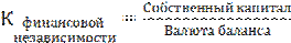 Первым из указанных коэффициентов будет коэффициент финансовой независимости, рассчитываемый по формуле: