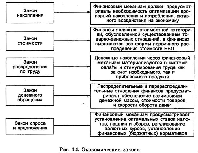 Финансы как экономическая категория базируется на действии и проявлении объективных экономических законов (рис. 1.1).