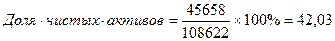 | 4. Доля чистых активов в валюте баланса, % | Х | 40,52 | 42,03 | 1,51 |