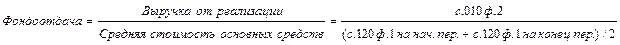 | 4 | Фондоотдача | d4 = выручка от реализации / средняя за период величина основных средств | d4 = с.010 ф.2 / с.120 ф.1, где в знаменателе рассчитывается величина средняя за период | 0,76 | Показывает эф-фективность ис-пользования толь-ко основных сред-ств организации |