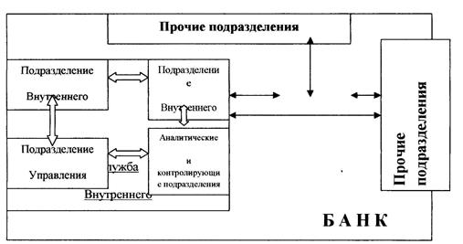 Внутренний контроль в коммерческом банке является важнейшей функцией управления, объективно необходимой на всех стадиях и уровнях управления. Он должен реализовываться непрерывно в ходе процесса управления, причем не, только специальными контрольными службами банка, но и всеми другими подразделениями, его менеджерами и рядовыми сотрудниками. В его поле зрения должны находиться как отдельные участки деятельности (как, например, бухгалтерский учет, кредитование, операции с ценными бумагами), так и все другие виды операций, а также финансово-хозяйственная деятельность кредитного учреждения в целом, которая совершается всеми его структурными и функциональными подразделениями.