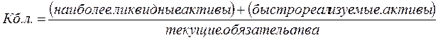 Коэффициент быстрой (срочной) ликвидности - отношение совокупности денежных средств, краткосрочных финансовых вложений и краткосрочной дебиторской задолженности, платежи по которой ожидаются в течение 12 месяцев после отчетной даты, к сумме краткосрочных финансовых обязательств. Коэффициент быстрой ликвидности характеризует ту часть текущих обязательств, которая может быть погашена за счет наиболее ликвидных активов.