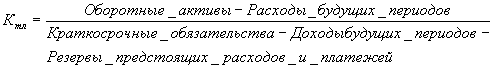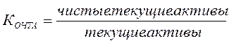 Коэффициент обеспеченности чистыми текущими активами. Этот коэффициент отображает ту часть текущих активов, которая финансируется за счет собственных средств организации.,