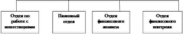 На крупных фирмах финансовая служба представлена, как правило, финансовым департаментом, который включает в себя несколько специализированных отделов, примерная схема такой структуры приведена на рисунке 2.