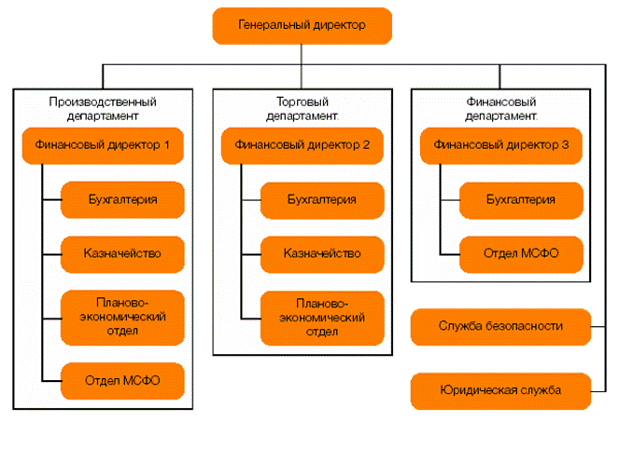 При такой организации финансовой службы каждый отдел выполняет определенные функции, а общее руководство финансовым менеджментом осуществляет финансовый директор, который: