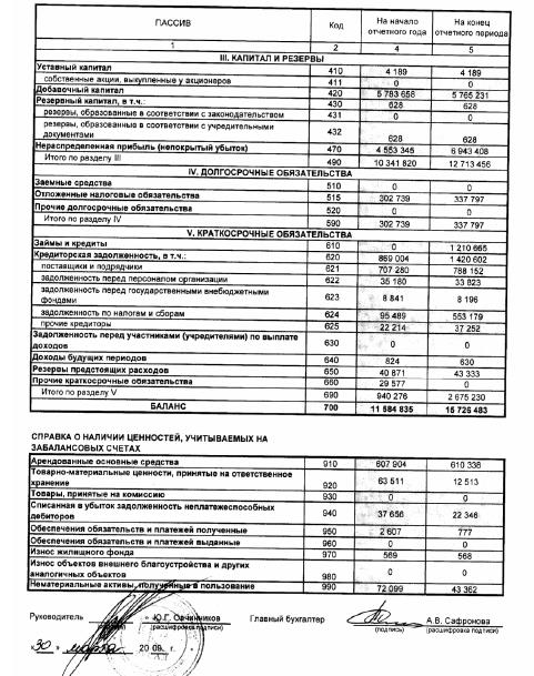 Продолжение приложения Б – Бухгалтерский баланс предприятия