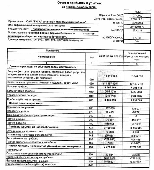 Реферат: Анализ вероятности банкротства ОАО РУСАЛ Ачинск