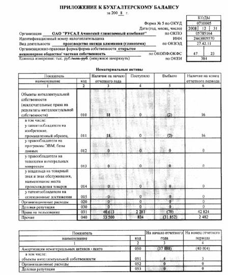 Приложение Е – Приложение к бухгалтерскому балансу. 55