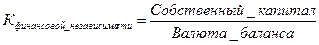 При расчете коэффициента общей платежеспособности активы предприятия берутся за вычетом задолженности участников (учредителей) по взносам в уставный капитал, а также оценочных резервов по сомнительным долгам и под обесценение ценных бумаг, если они создавались. Обязательства предприятия в знаменателе коэффициента общей платежеспособности не включают суммы доходов будущих периодов, отражаемые в разделе V баланса. Естественным является следующее нормальное ограничение для коэффициента: К о.п.≥ 2 .