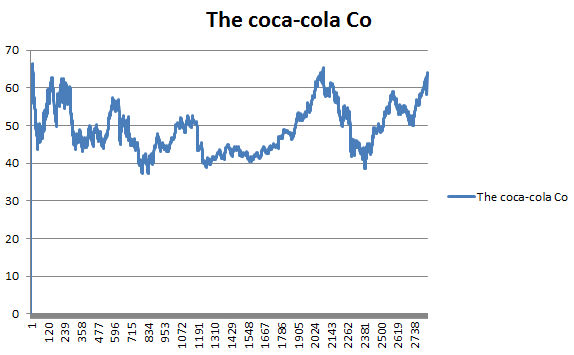 Акції The coca-cola Co в $ за 10 років . Період який розглядаємо –
