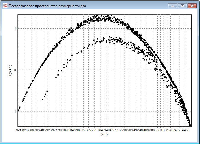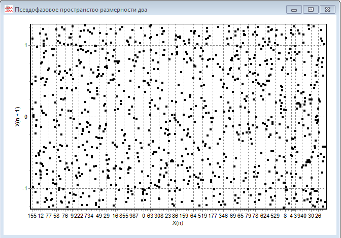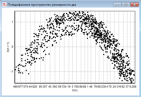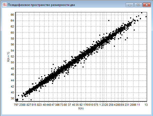 На цьому кроці можемо визначити залежність між поточними значеннями ряду та попередніми, що дозволяє відвинути гіпотезу о існуванні джокера та атрактора.
