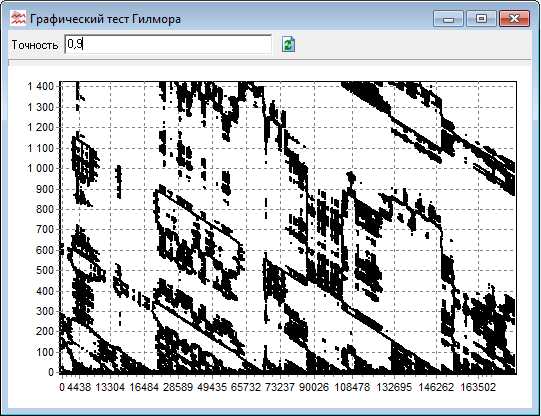 Дозволяє визначити існування хаотичної поведінки – нестійкі траєкторії, а також існування в системі джокера. Аналіз графіка дозволяє зробити висновок о наявності хаосу – на малюнку можемо побачити лінії. Тип поведінки економіки – детермінуючий хаос.