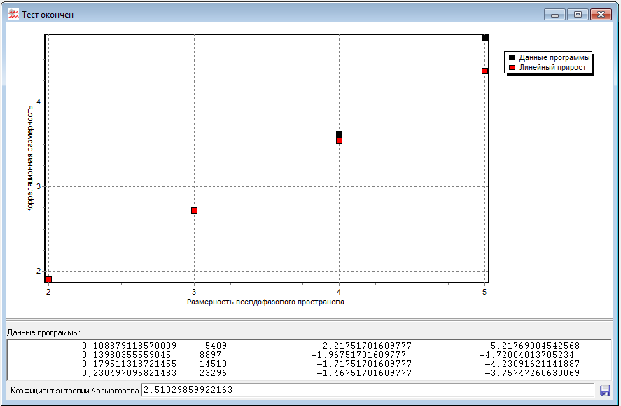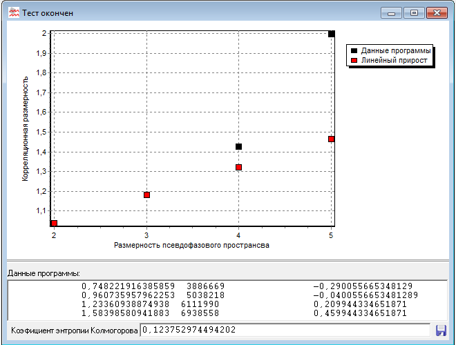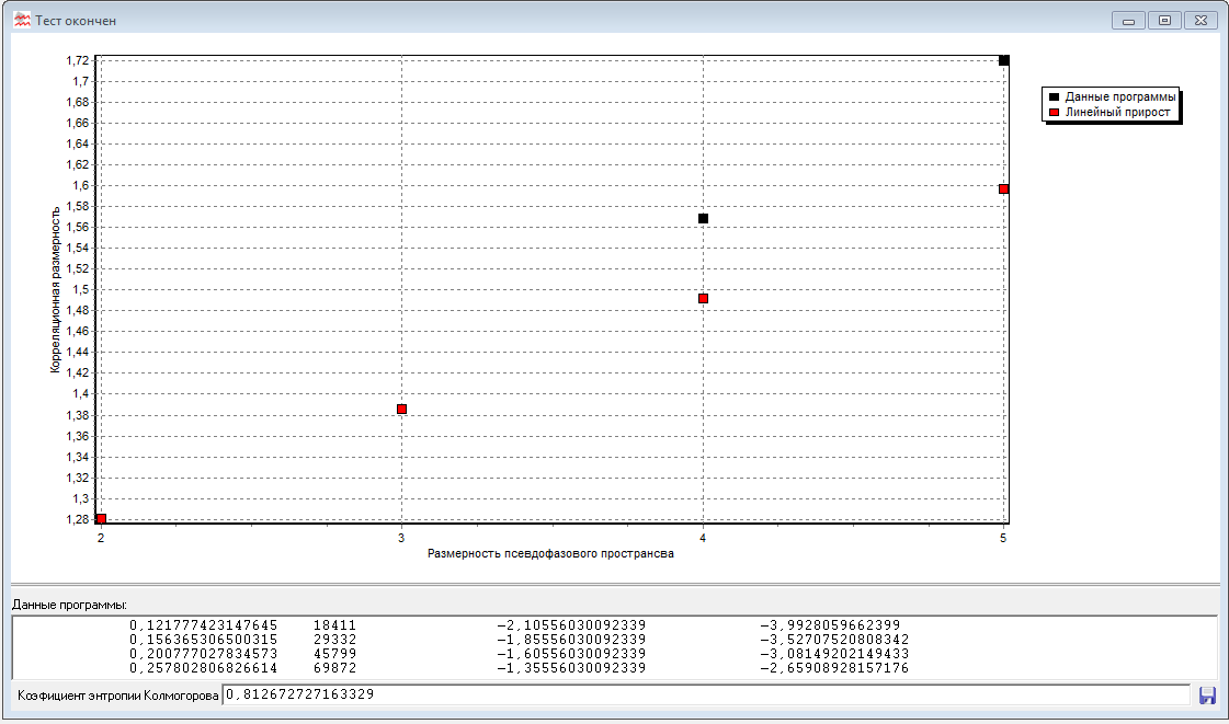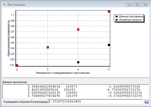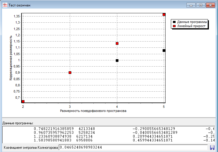Якщо існує кут між розмірністю псевдо фазового простору та оцінкою кореляційної розмірності, то висуваємо гіпотезу про існування старанного атрактору.