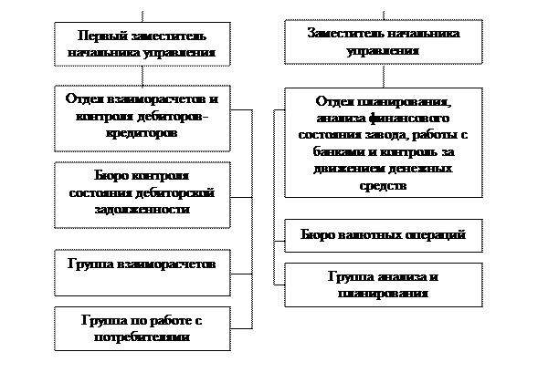 Структура управления финансово - экономической службы предприятия. Во главе предприятия генеральный директор. За ним: первый заместитель генерального директора – финансовый директор. А затем:
