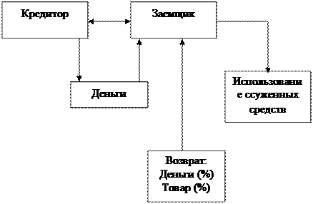 Помимо кредиторов и заемщиков, элементом структуры кредитных отношений является объект передачи - то, что передается от кредитора к заемщику и что совершает свой обратный путь от заемщика к кредитору. (Рис.2) Объектом передачи выступает ссуженная стоимость , как особая часть стоимости. Прежде всего она представляет собой своеобразную нереализованную стоимость .