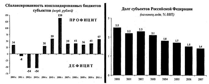 | Федеральный бюджет РФ | Консолидированные бюджеты субъектов Федерации |