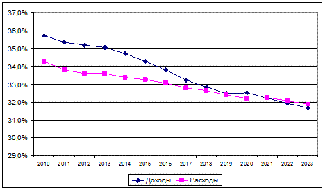 | Доходы бюджетной системы | 40,2% | 35,7% | 35,2% | 34,3% | 32,5% | 31,7% | |